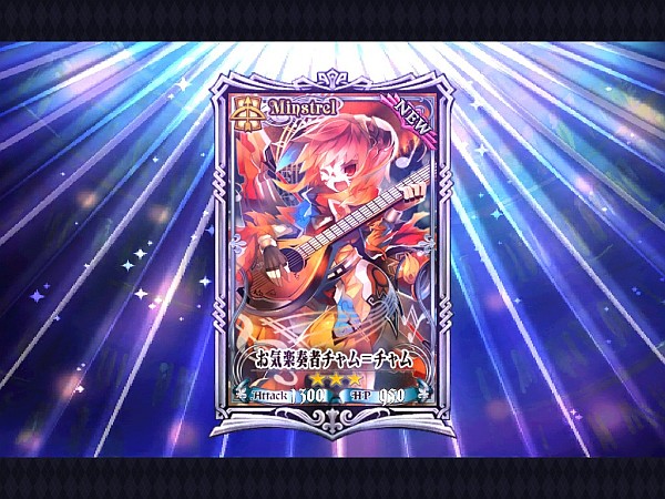 湖都のガチャのSSRは踊り子や吟遊詩人など支援系スキルのカードが主体でした。到達の記念に1回引いてみると・・・