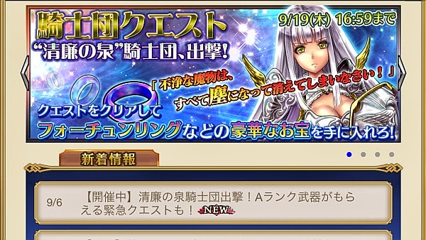 Aランク武器がゲットできるかも?騎士団クエスト「”清廉の泉”騎士団、出撃!」がスタート