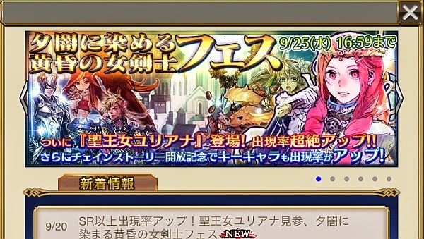 聖王女ユリアナ登場!「夕闇に染まる黄昏の女剣士フェス」が開催中、とりあえず引いてみた。