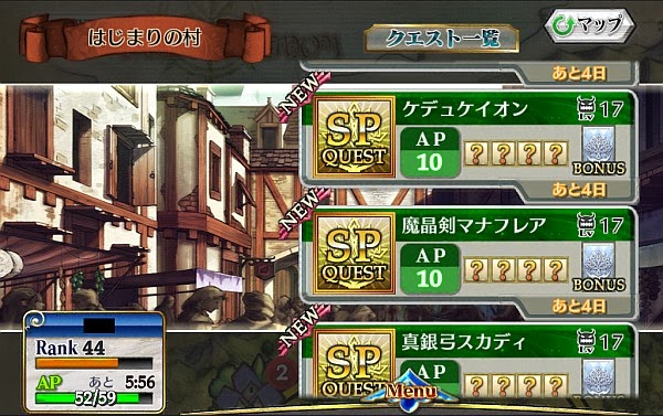 ~魔法学園の中間試験~も4日目。今日も17:00より新しいクエストがスタートしました。「魔法試験4限目」の消費APは12でモンスターLvは24。モンスターLvの上がりかたが緩やかになったので、すこし安心しています。