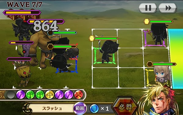 7WAVE目で一番曲者なのは、サイクロプスの裏にいる僧侶トレント。回復スキルの体力回復量が多く、僧侶トレントを残しておくとサイクロプスが中々倒せません。貫通攻撃スキルや全体攻撃スキルで真っ先に駆逐しましょう。