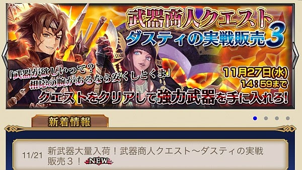 武器商人クエスト 11月21日(木) 15:00から配信開始!