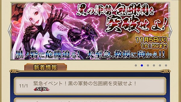 黒の軍勢の包囲網を突破せよ!が配信。11月5日(火)16:59まで
