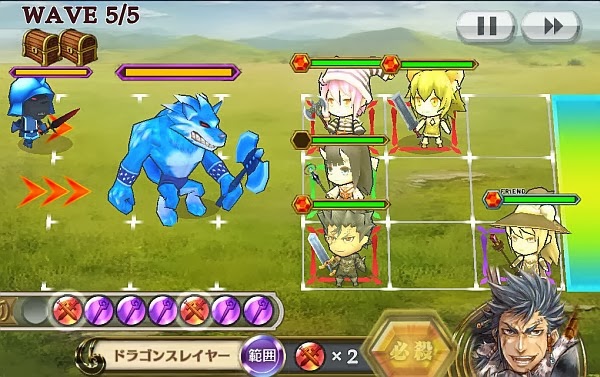 6WAVE目にボスクラスの魔物が二体同時に襲ってきます。ボスクラスは攻撃力が高く、同時に戦うと僧侶の回復が間に合いません。そこで道中で貯めておいたマナを使って、鎧戦士を一気に駆逐しちゃいます。